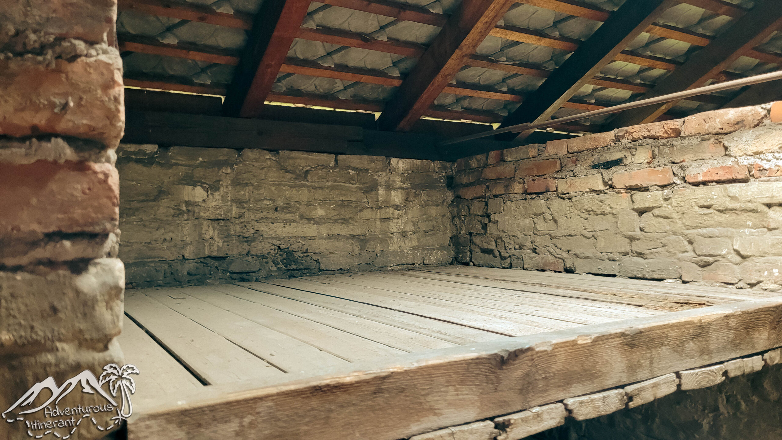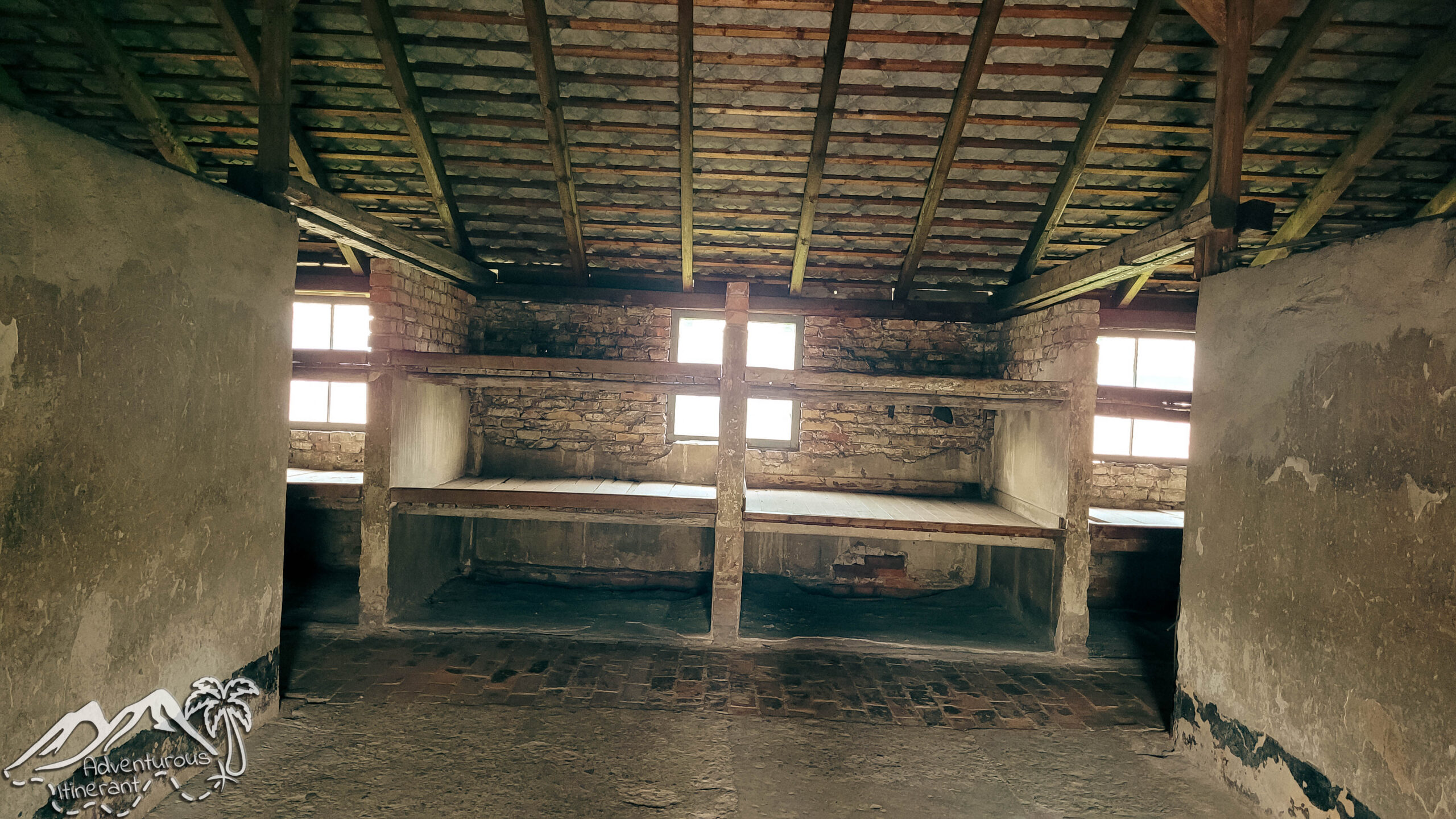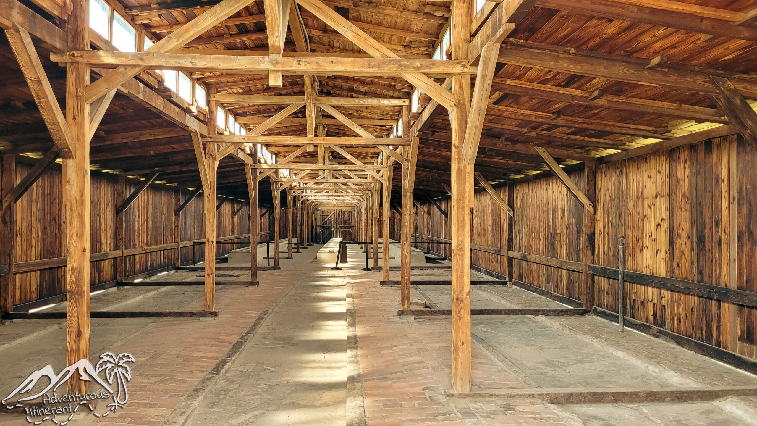 You see plains of what look like horse stables stretching endlessly, filled with wooden bed frames. It’s horrifying to imagine people had to live and sleep in these conditions.