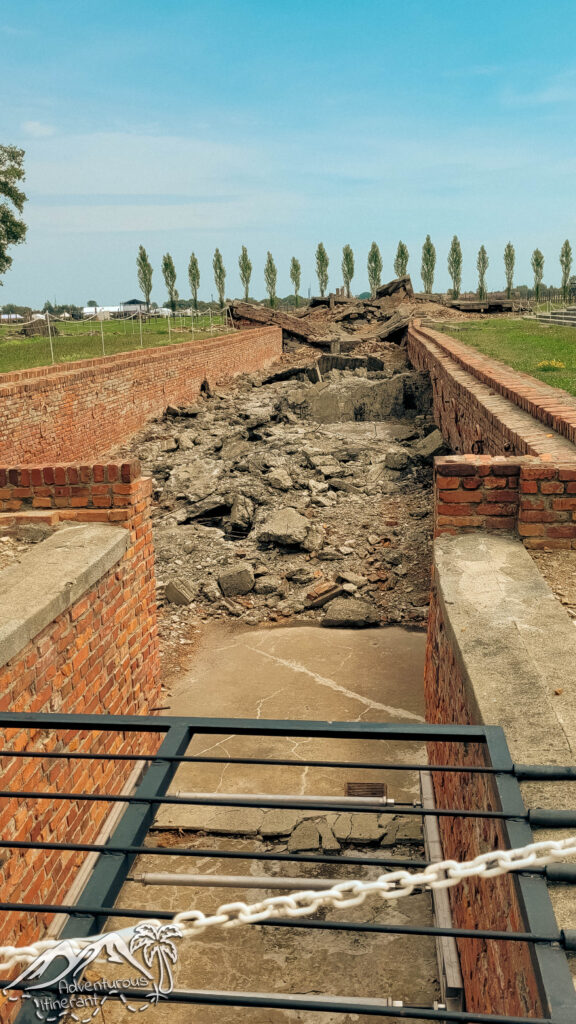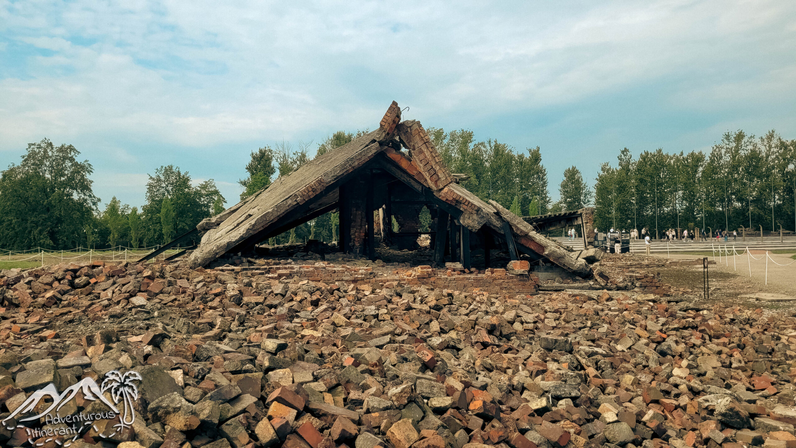 One side of the camp had only these wooden barracks—the worst ones—while the other side had barracks built from bricks. Many buildings were burned down or blown up by the perpetrators as they retreated, leaving only chimneys standing like skeletons. Here, the freedom of a self-guided visit was even more valuable. It allowed us to walk the vast grounds in quiet reflection, from the infamous railway tracks to the ruins of the crematoria.