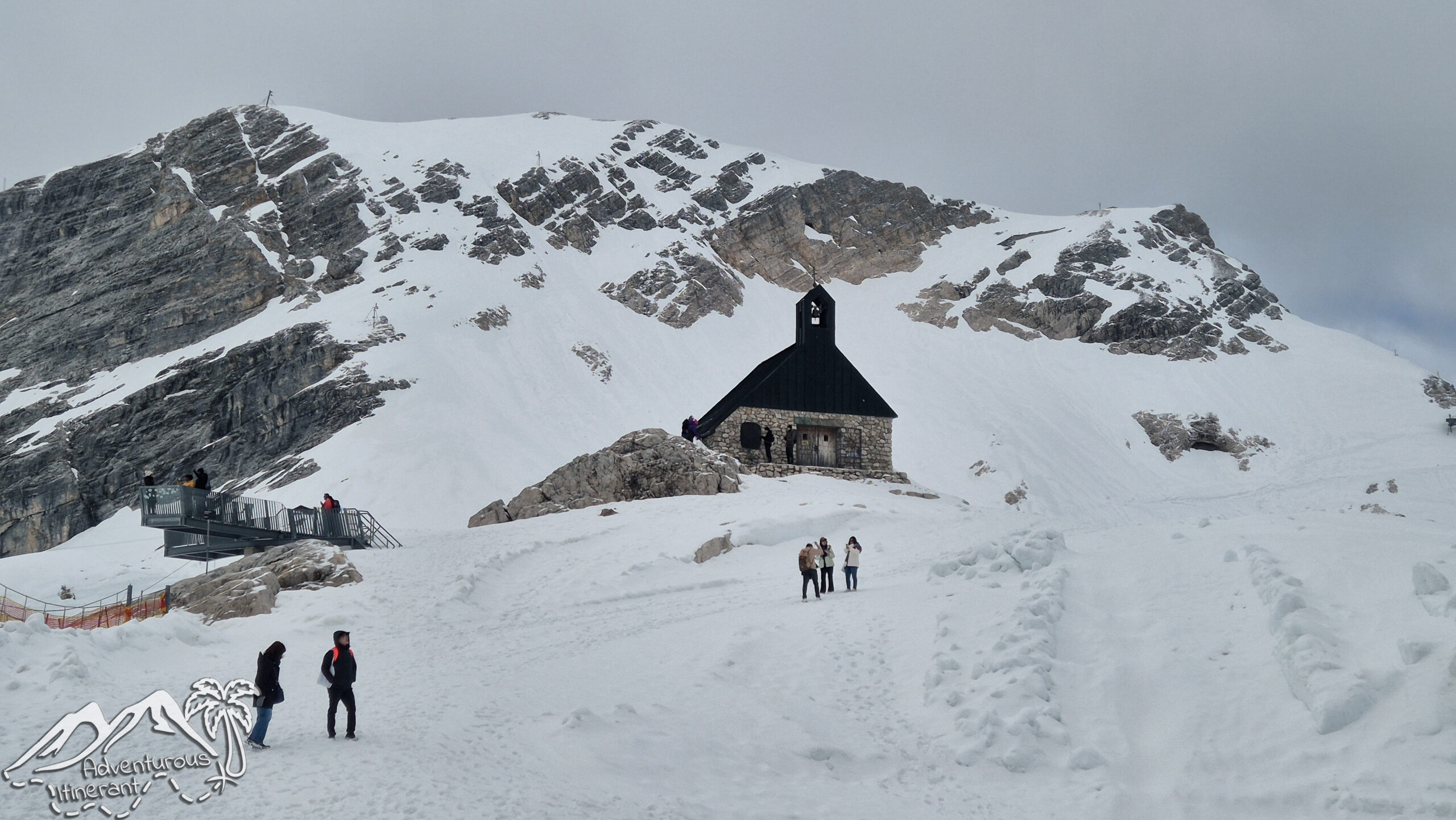 After exploring the Zugspitzplatt station area, jump on the cable car and go to the top to catch some amazing views of the Alps. If you don’t like to be in the clouds, it’s not worth going up on an overcast day because you will see only mist and clouds, but I suggest doing it even though it’s an overcast day because it’s a magical experience! We didn’t see the views but enjoyed the wind whistling through and being in the mist!